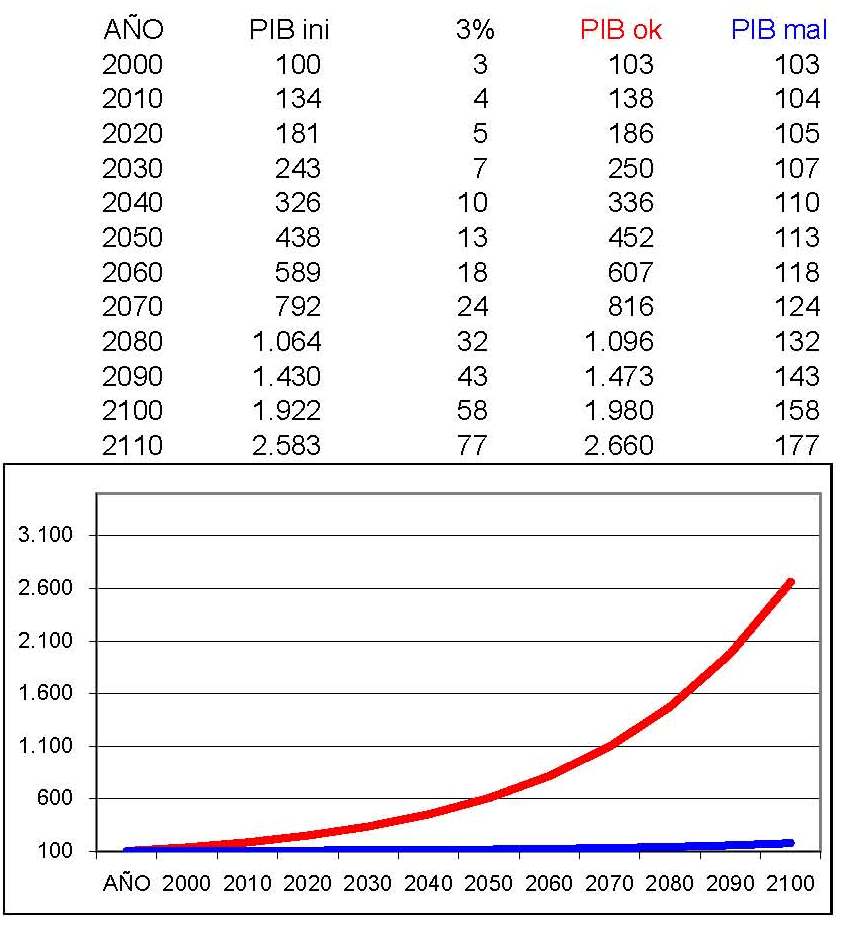 Y la segunda, si crecemos al 3% el año próximo también y así sucesivamente, eso no es una linea recta sino exponencial, ¿de donde sacaremos los recursos?